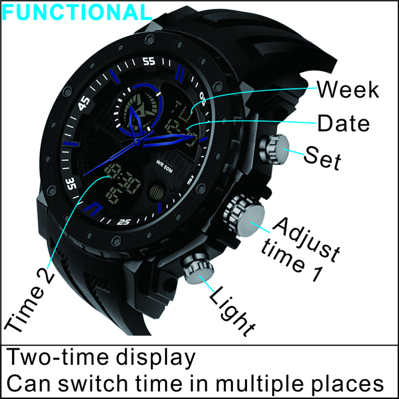 / MD4910-Plastic Quartz Analogue + Digital watch